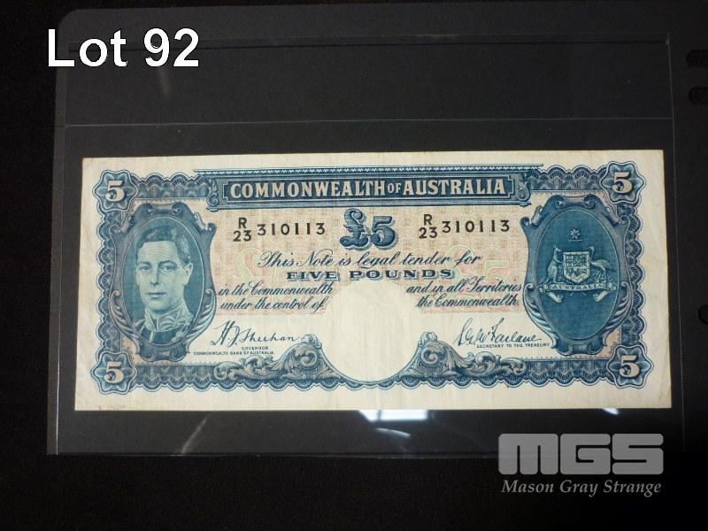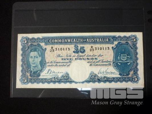 1938 5 POUND NOTE SHEEHAN MCFARLANE BLUE SIGNATURE NICE GRADE