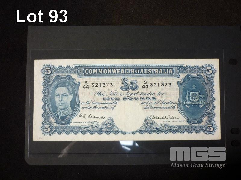 1952 5 POUND NOTE COOMBS WILSON CRISP NOTE 1 PIN HOLE