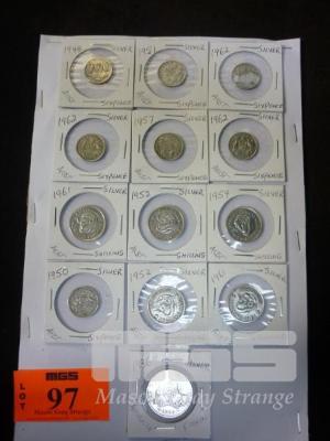 13 PREDECIMAL COINS INC SIXPENCE, SHILLINGS AND FLORIN