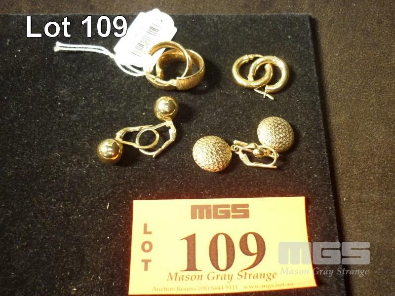 4 X SETS OF GOLD EARRINGS MARKED 375, TOTAL WEIGHT 10.5 grams