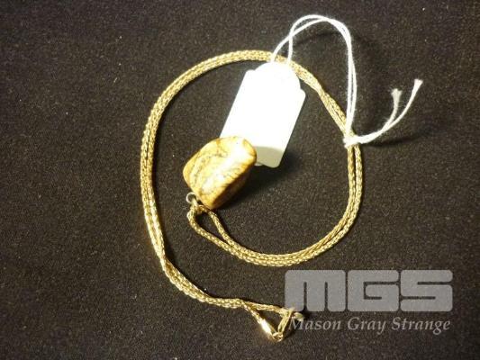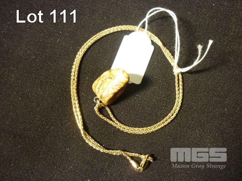 GOLD NECKLACE, MARKED 9KT, APPROX 4.7 grams WITH MINERAL PENDANT