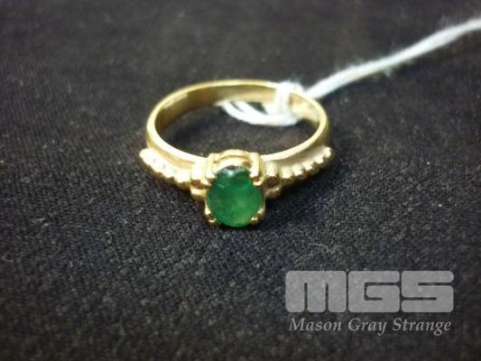 GOLD RING SET WITH GREEN STONE MARKED 750, 4.36 grams