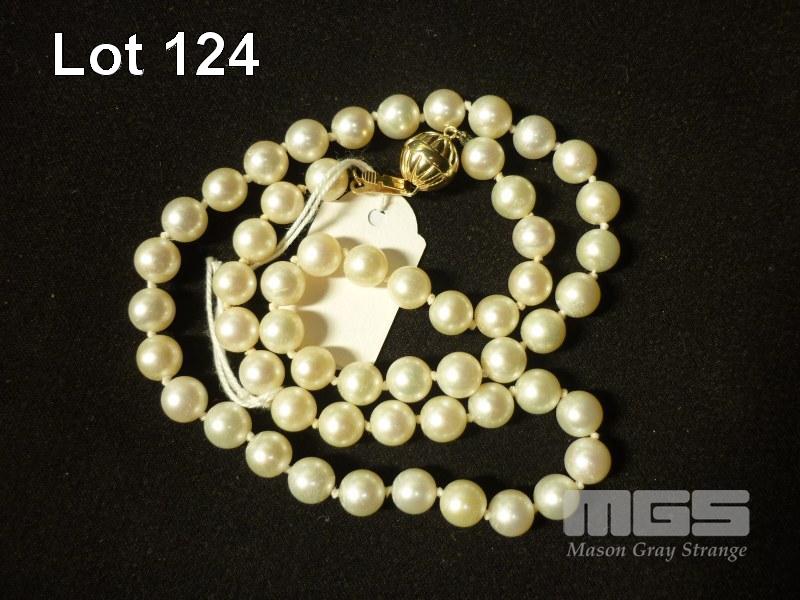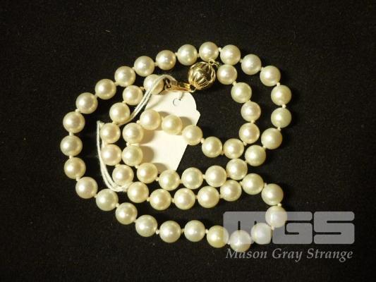 PEARL NECKLACE WITH GOLD CLASP, MARKED 585, 14k