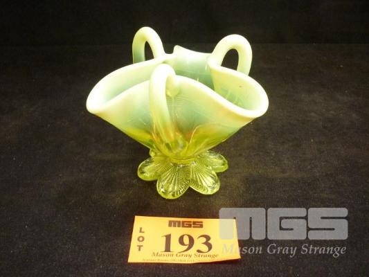 URANIUM GLASS FOLDED VASE, 9cm (H)