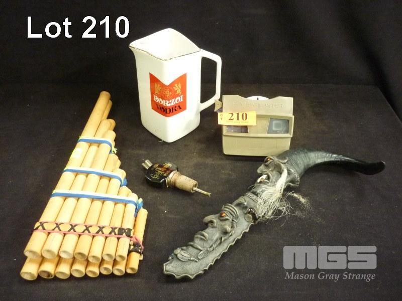 WADE BORZOI VODKA PITCHER, VIEWMASTER, PAN FLUTE & ORNAMENTAL DAGGER