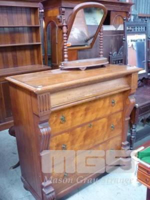 CEDAR/HUON PINE CHEST OF 4 DRAWERS, BUNG FEET WITH TIMBER VENEER VANITY MIRROR