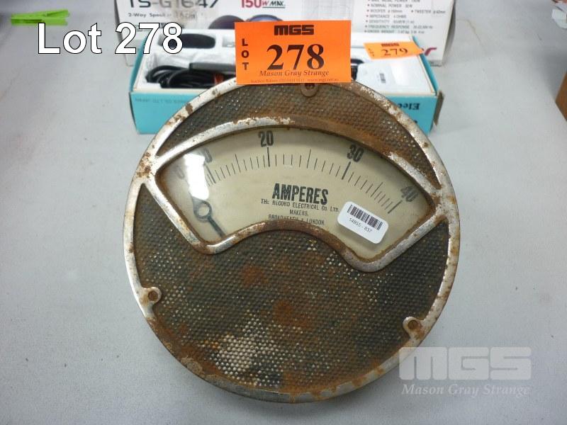 VINTAGE AMPERES GAUGE, THE RECORD ELECTRICAL CO, BROADHEATH & LONDON