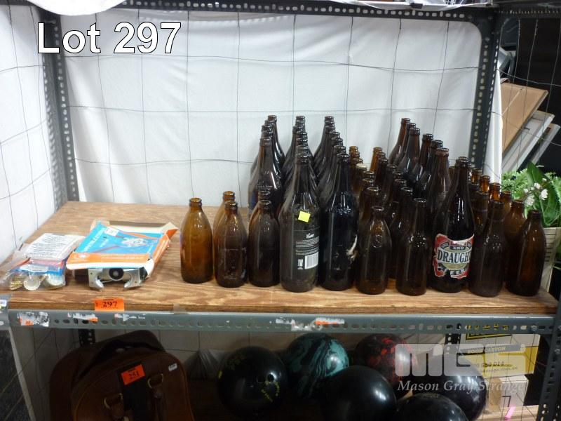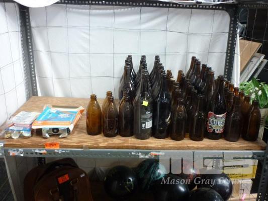 ASSORTED EMPTY BEER BOTTLES, BOTTLE CAPPER & CAPS