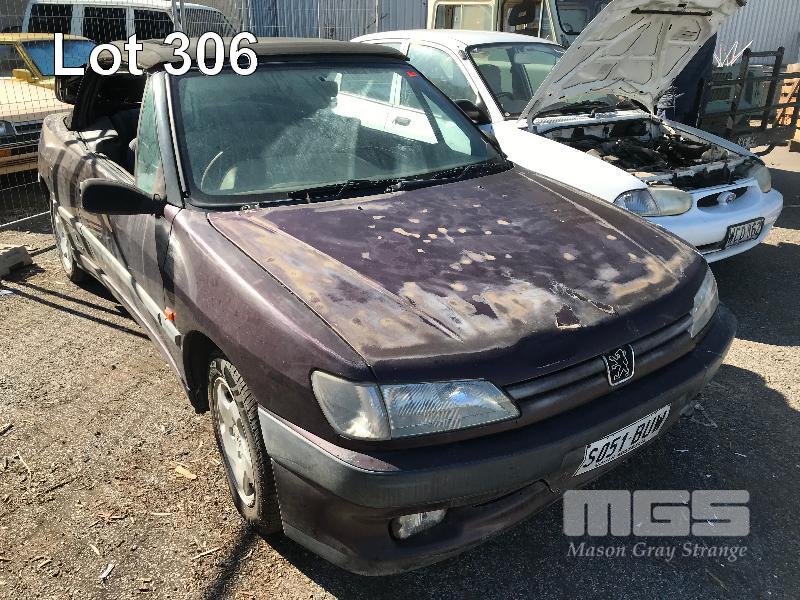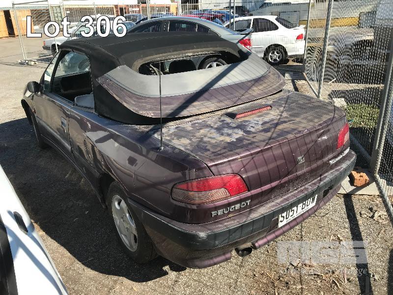 1995 PEUGEOT 306 CABRIOLET REG: S051 BVW (EXPIRED) VIN: VF37DLF2230597135 ODO: 227,331 4 CYLINDER, 5 SPEED MANUAL, PETROL, PURPLE, 2 DOORS, 5 SEAT, (NO PAPERS, NO OWNER'S MANUAL, NO SERVICE BOOKS) CONDITION: INTERIOR/EXTERIOR - POOR CONDITION TO SUIT SPARE PARTS & WRECKING