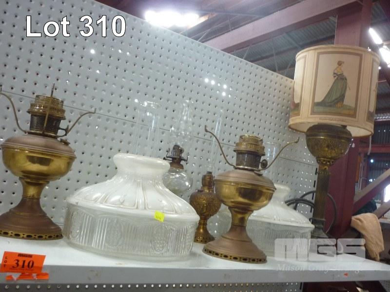 KEROSENE LAMPS, TABLE LAMP & GLASS SHROUDS