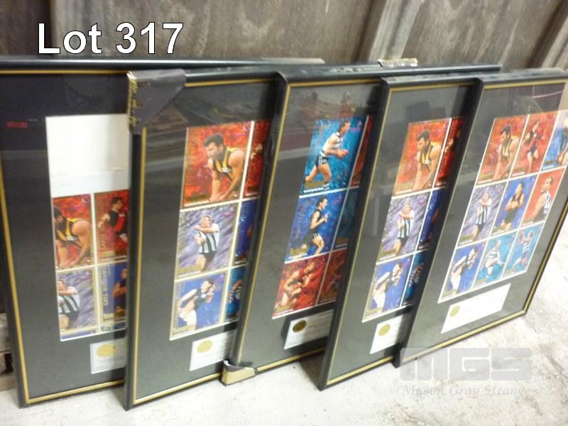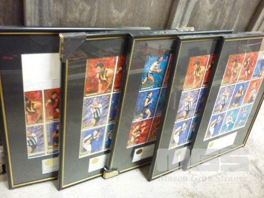 5 X FRAMED & SIGNED FOOTBALL QUARTERS UNCUT COLLECTOR CARDS