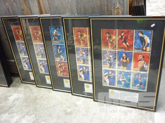 5 X FRAMED & SIGNED FOOTBALL QUARTERS UNCUT COLLECTOR CARDS