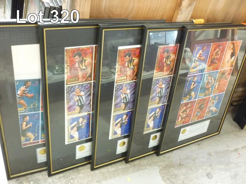 5 X FRAMED & SIGNED FOOTBALL QUARTERS UNCUT COLLECTOR CARDS