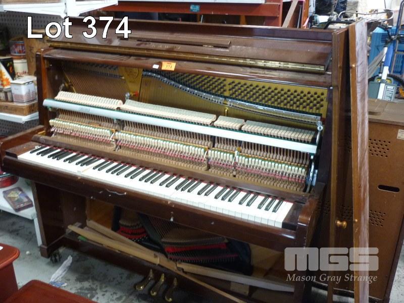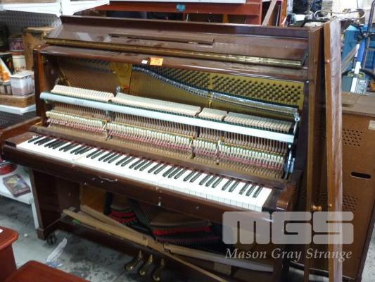 KAWAI UPRIGHT PIANO, TIMBER VENEERED, PARTLY DISMANTLED PANELS REMOVED TO ENABLE REMOVAL FROM SECOND STOREY