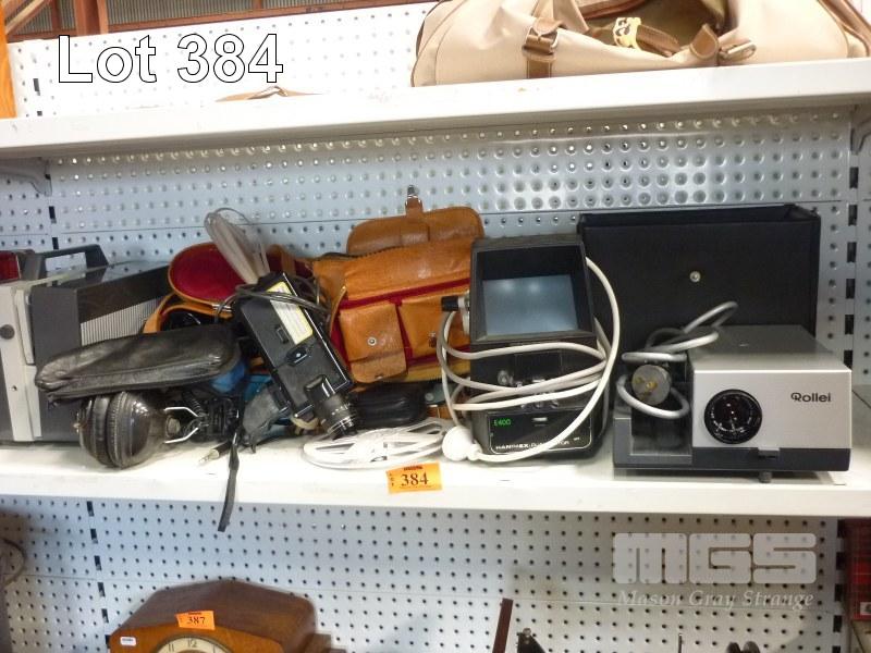 VARIOUS CAMERA EQUIPMENT INC SLIDE VIEWER, BINOCULARS AND EUMIG MIN 5 VIDEO CAMERA, ETC