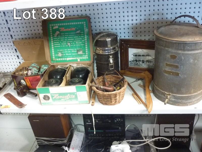 SET HENSLITE LAWN BOWLS, TOBACCO PIPES, VINTAGE DISPENSER, ETC