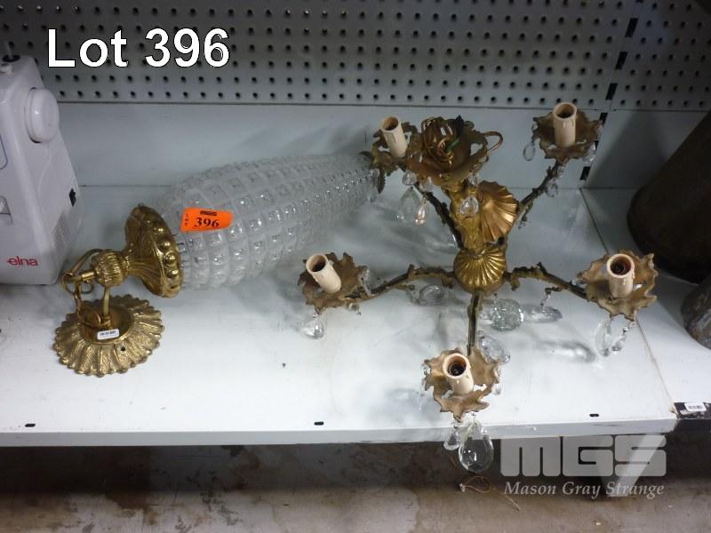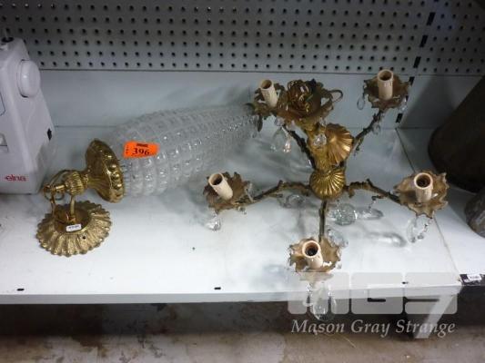 BRASS LADY CHANDELIER & GLASS DROP LIGHT FITTING