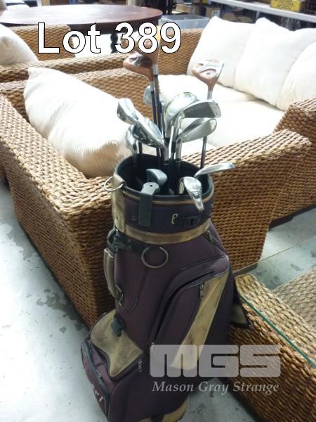 GOLF BAG & SET OF GOLF CLUBS, INCLUDING CALLAWAY, BARNER, PRESTIGE & CLEVELAND