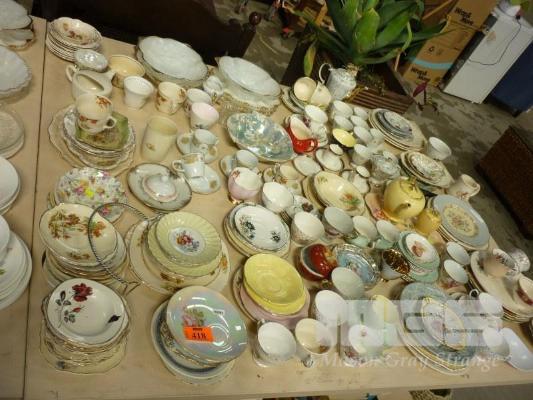 ASSORTED TEA CUPS, SAUCERS & PLATES, 1 x TABLE