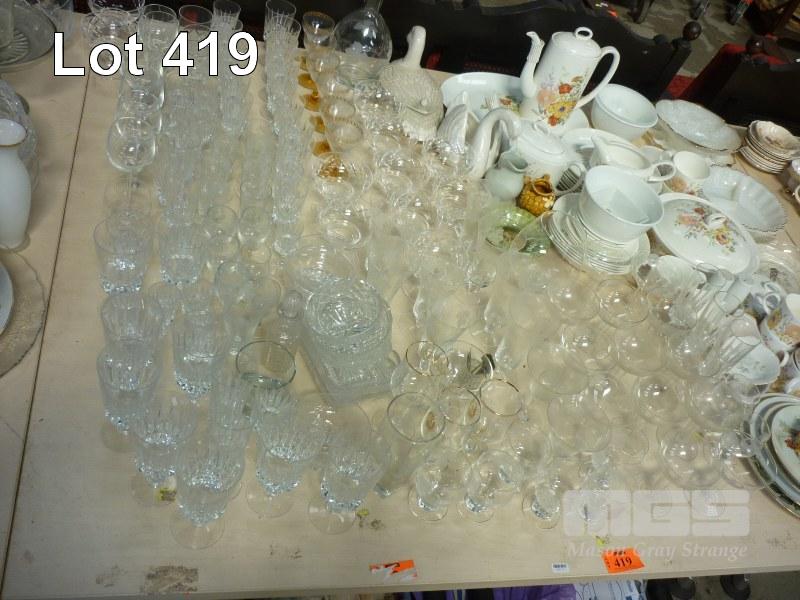 ASSORTED GLASS/CRYSTALWARE, DINNERWARE, BOWLS, ETC, 1 x TABLE