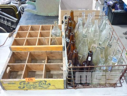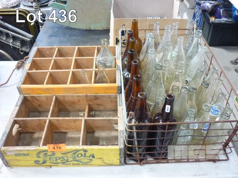 METAL CRATE WITH VINTAGE/RETRO DRINK BOTTLES & MIRANDA & PEPSI COLA TIMBER DRINKS CRATES