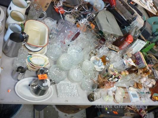 ASSORTED GLASSWARE, SALT & PEPPER SHAKERS,, ETC, 1 x TABLE