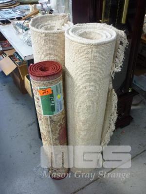 2 x BEIGE WOOL RUGS, 190 x 92cm, RED/BEIGE, PP RUG, 150 x 80cm