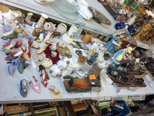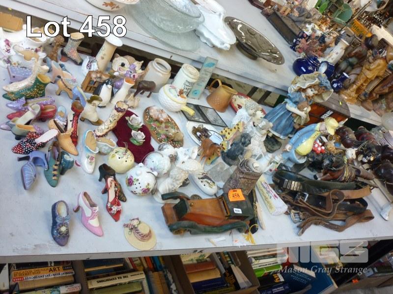 ASSORTED ORNAMENTS, LEATHER STRAPS, ETC, 1 x TABLE