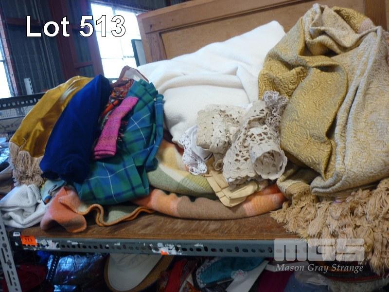 ASSORTED BEDDING, DOILIES, ETC