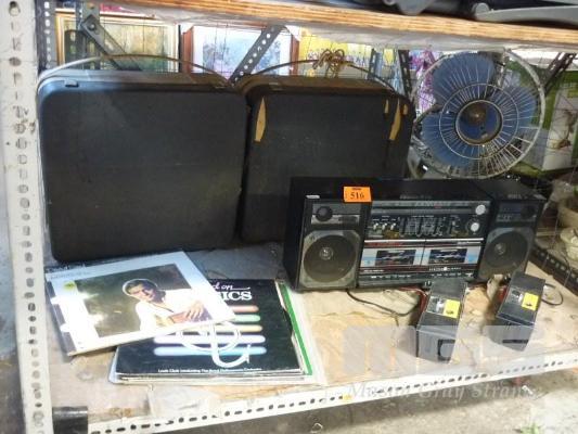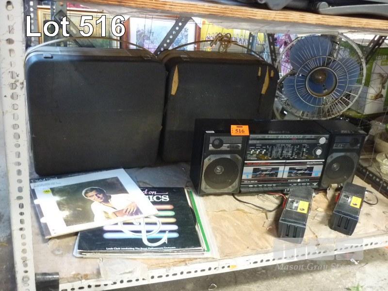 2 x RETRO PHILIPS PORTABEL REEL TO REEL PLAYERS, GE PORTABLE STEREO, PAIR REALISTIC CITIZEN BAND TRANSCEIVERS, ALBUMS & DESK FAN