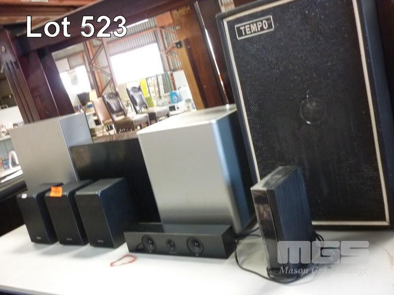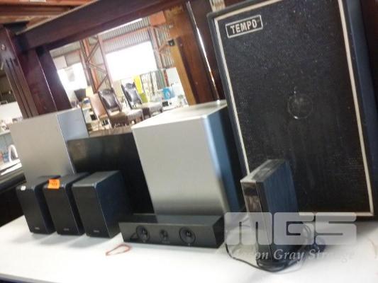 SAMSUNG WIRELESS SUB WOOFERS, SAMSUNG SURROUND SPEAKERS, TEMP SPEAKER BOX, ETC