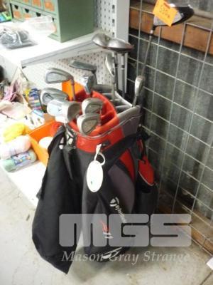 GOLF BAG & SET OF GOLF CLUBS, INCLUDING CALLAWAY, DYNACAST, BEN HOGAN, ETC
