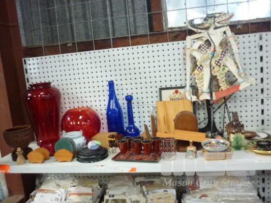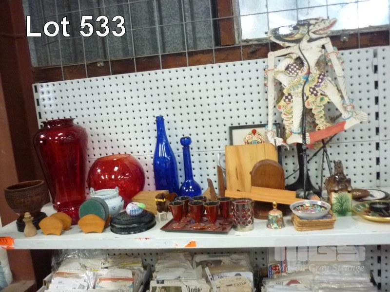 COLOURED GLASSWARE, SHADOW PUPPETS, ETC