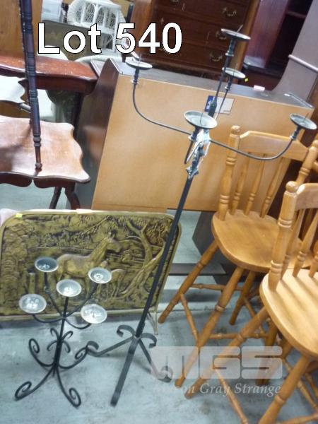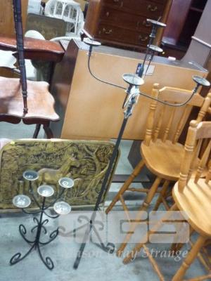 2 x CANDELABRAS & BRASS EMBOSSED FIRE SCREEN