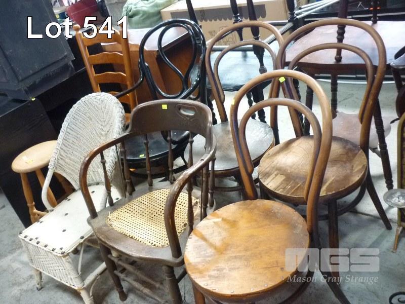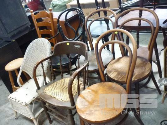 4 x BENTWOOD CHAIRS, ARM CHAIR, WICKER CHAIR, DINING CHAIR & STOOL