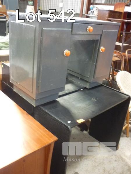 BLACK MOBILE STUDENTS DESK, RETURN & GREY PAINTED TIMBER CHILDRENS DESK