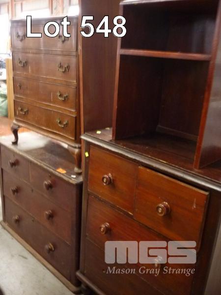 3 x TIMBER CHEST OF 4 DRAWERS, (1 x MISSING 2 HANDLES, 1 x MISSING 1 HANDLE)