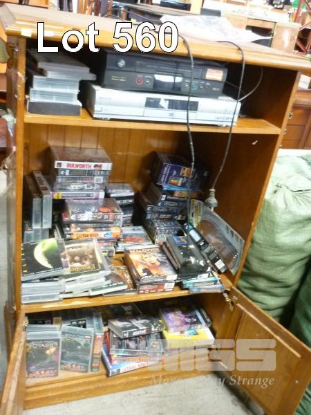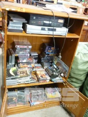 CENTREX DVD PLAYER, GE VCR (NO REMOTES), ASSORTED VHS TAPES, DVD'S, CASSETTES WITH TIMBER ENTERTAINMENT UNIT