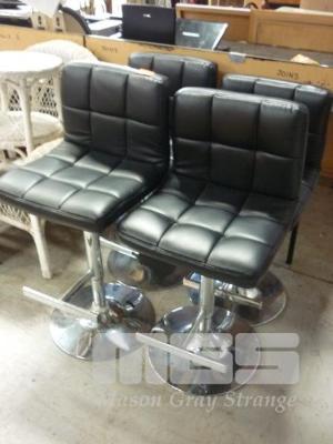 SET 4 BAR STOOLS, CHROME & BLACK VINYL