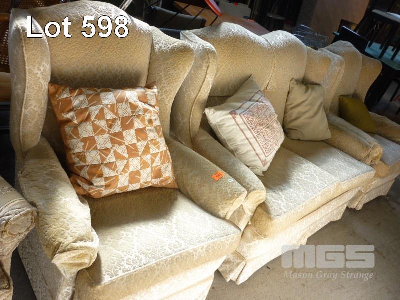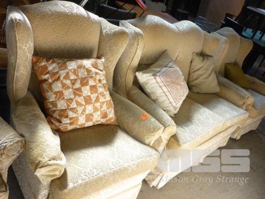 BEIGE FABRIC, WING BACK 3 PIECE LOUNGE SUITE, INCLUDING 2 SEATER & 2 x SINGLES