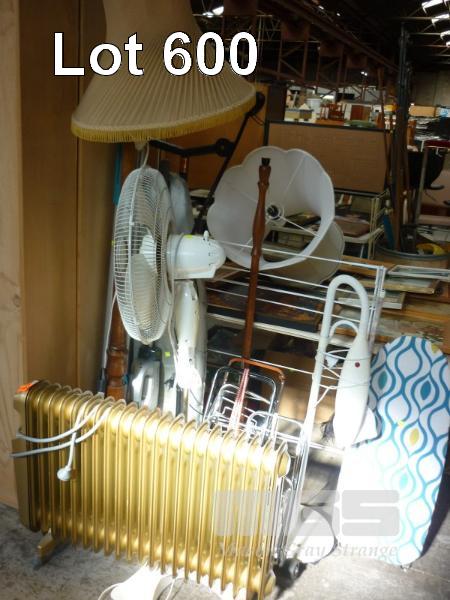 IRONING BOARDS, STANDARD LAMPS, SHOPPING TROLLEYS, COLUMN HEATER, ETC