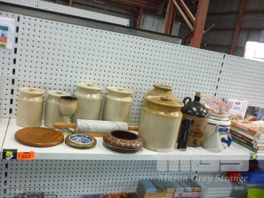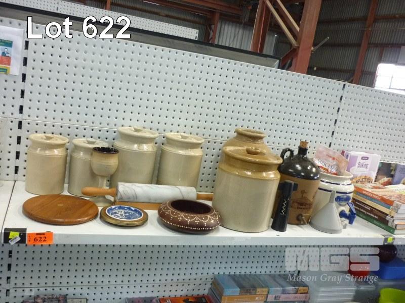 STONEWARE CANISTERS, WATER DISPENSER, ETC