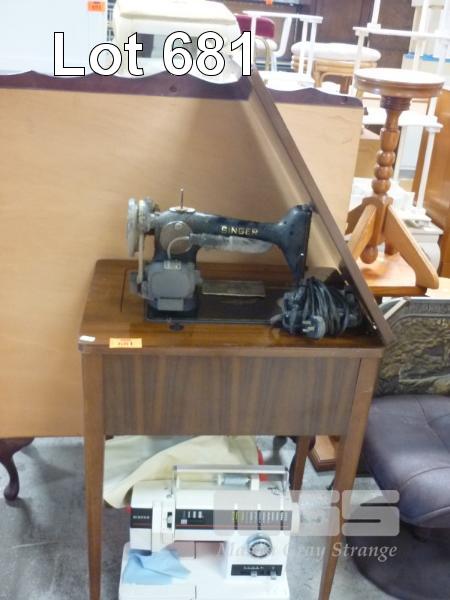 VINTAGE SINGER SEWING MACHINE IN SEWING TABLE, SINGER SEWING MACHINE, (NO PEDAL) & CASE OF ACCESSORIES