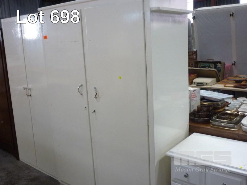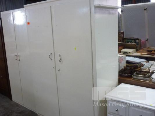 WHITE PAINTED TIMBER WARDROBE, LINEN PRESS & BEDSIDE CABINET