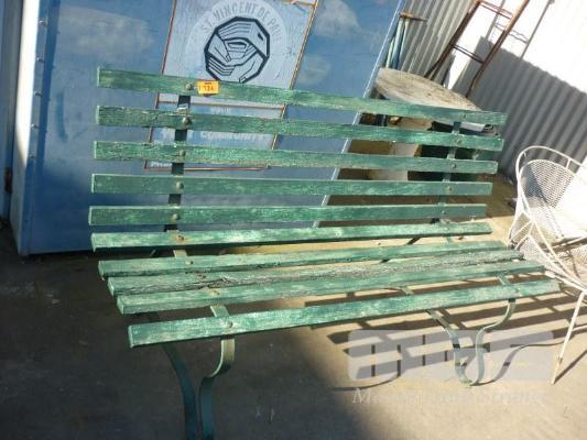 GREEN PAINTED GARDEN BENCH SEAT, TIMBER SLAT