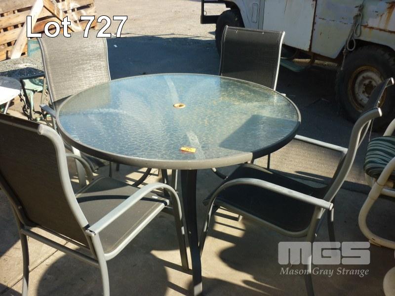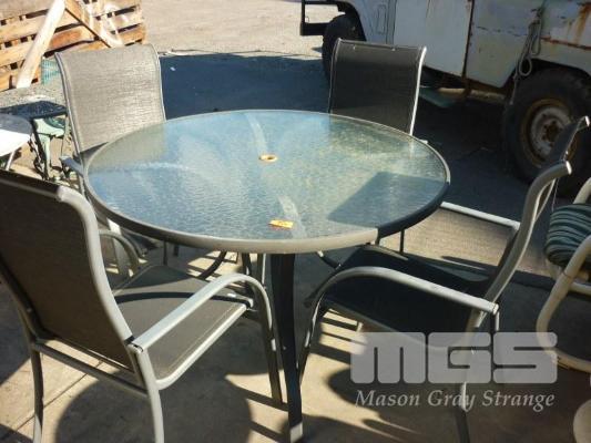 ALUMINIUM FRAMED 5 PIECE OUTDOOR SETTING INCLUDING ROUND TABLE & 4 x ARM CHAIRS