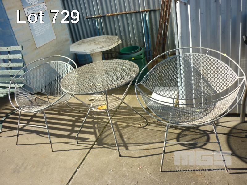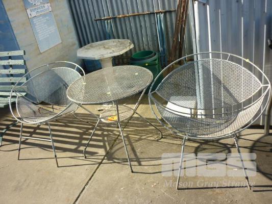 METAL FRAME 3 PIECE OUTDOOR SETTING, ROUND TABLE & 2 x DOME CHAIRS