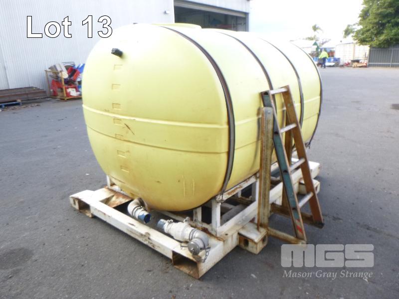 POLY TANK, TEAM POLY 4,500 LITRE 3" OUTLET MOUNTED ON SKID BASE ALLOY INSPECTION LADDER CONTAINER PIN & FORK POCKET