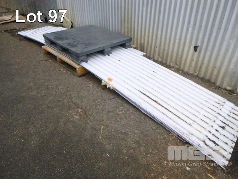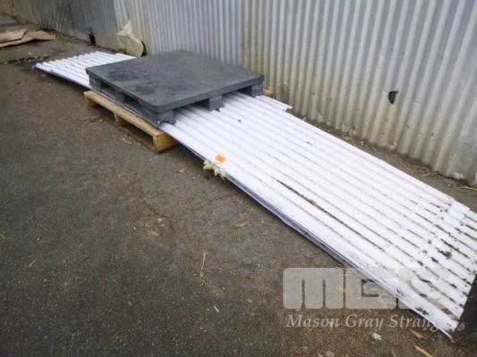 5 x WHITE POLY CARBONATE SHEETS, UP TO 390cm, (USED)