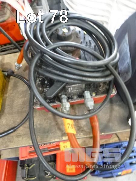 DOUBLE ACTING HYDRAULIC POWER PUMP, ENERPAC WITH HOSES & COUPLING